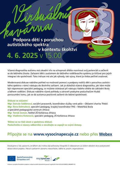 Moderovaná diskuze na téma Podpora dětí s poruchou autistického spektra v kontextu školství se uskuteční 4. 6. 2025 v 15:00. Podívejte se na bližší informace (PDF).